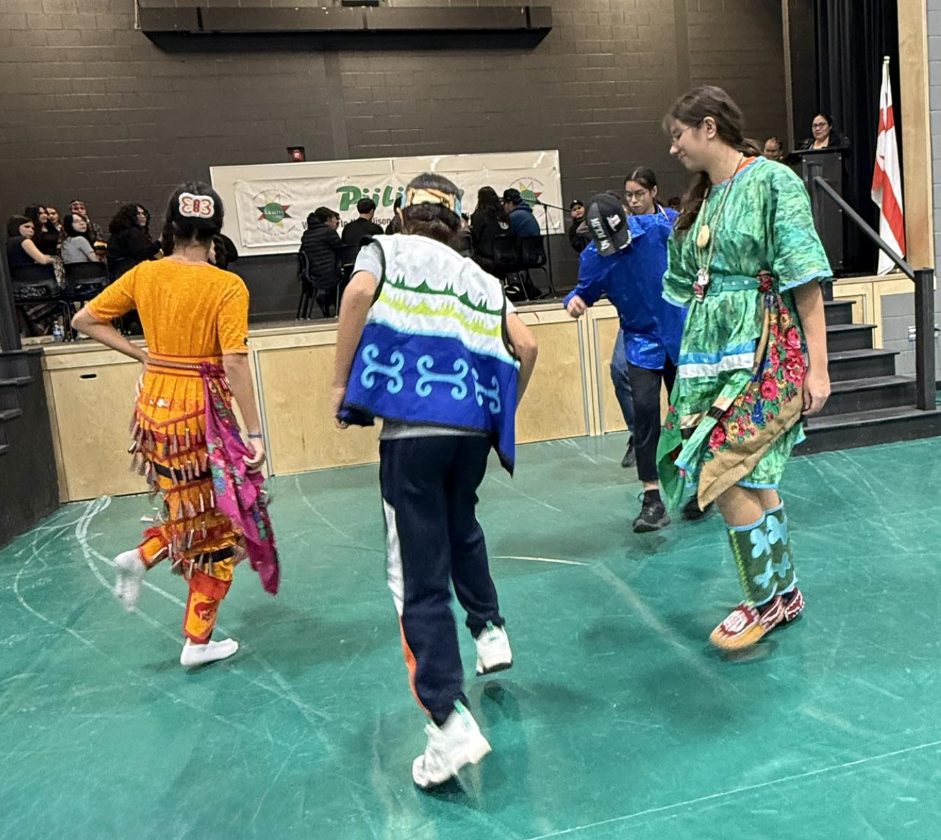 Students opened the showcase with powerful drumming that echoed throughout the gym, setting the tone for a day rooted in connection and culture. Youth took to the stage to share heartfelt speeches in Mi’kmaw, dancers showcased a variety of dance styles, including a lively Kojua, while student artwork ranging from beadwork to drawings, was displayed proudly. The event also featured friendly games of waltes, giving students and guests a chance to enjoy one of the oldest Mi’kmaw traditions.