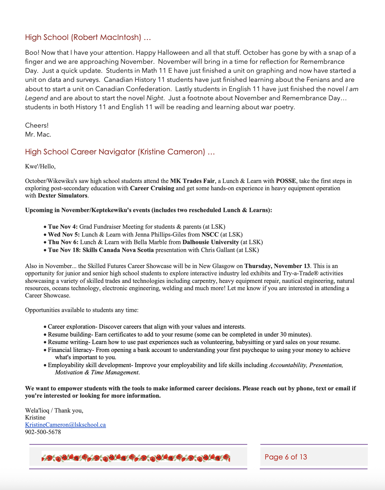 October 2025 School and Community News - Pictou Landing